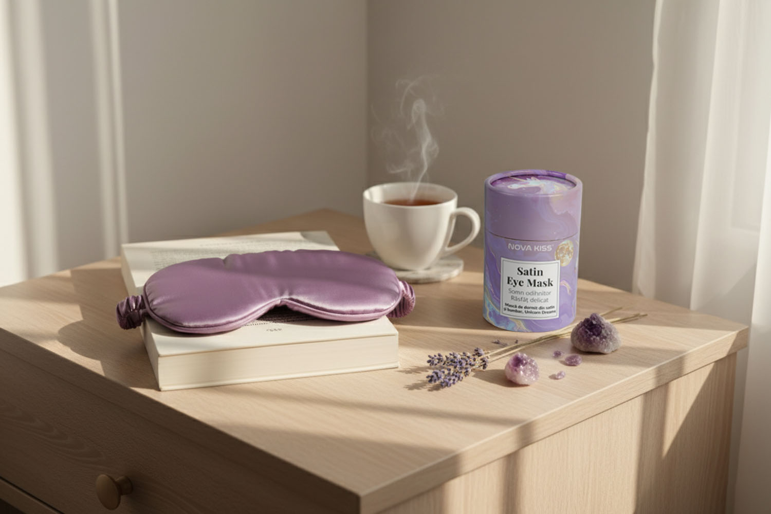 Descoperă magia nopților liniștite cu Satin Eye Mask de la NOVA KISS®, accesoriul ideal pentru relaxare totală, călătorii sau ritualul tău de beauty sleep. Realizată din satin fin la exterior și bumbac natural la interior, această mască premium oferă un echilibru perfect între confort, protecție și eleganță. Materialele atent alese sunt moi, respirabile și delicate cu pielea, prevenind apariția ridurilor fine și protejând zona ochilor în timpul somnului.